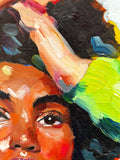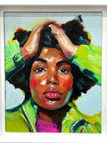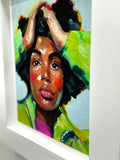 Oil on wood panel in hand made white wood frame